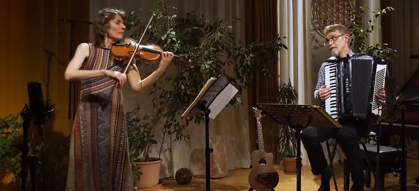 CRICKET & SNAIL recorded this video at Centrum Kalimeta in the Vysočina Region. This 20-minute video was filmed by a Czech TV crew for broadcast in U.S.A. and features Lucie Carlson's "Medieval Legend," Leonard Cohen's classic "Take This Waltz," James Carlson's "La Vie au Cafe," a setting of three Irish reels, and music from the film Amelie de Montmartre. Sign up for our NEWSLETTER and check out this exclusive video now.